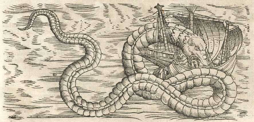 It makes me think of those medieval maps with sea monsters on the edges. These did not simply represent mythological peril. There was serious danger in venturing too far from the familiar coastlines. Ships swallowed whole, entire crews disappeared without a trace, it could be storms, savages, and unspeakable things of the deep. The seafarer was given a warning in these symbols—this place is an uncharted water enter at risk of all.